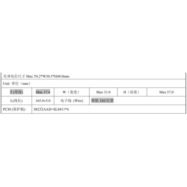 | 1.1.13 Soft pack Weight | About 20g | Battery only | |